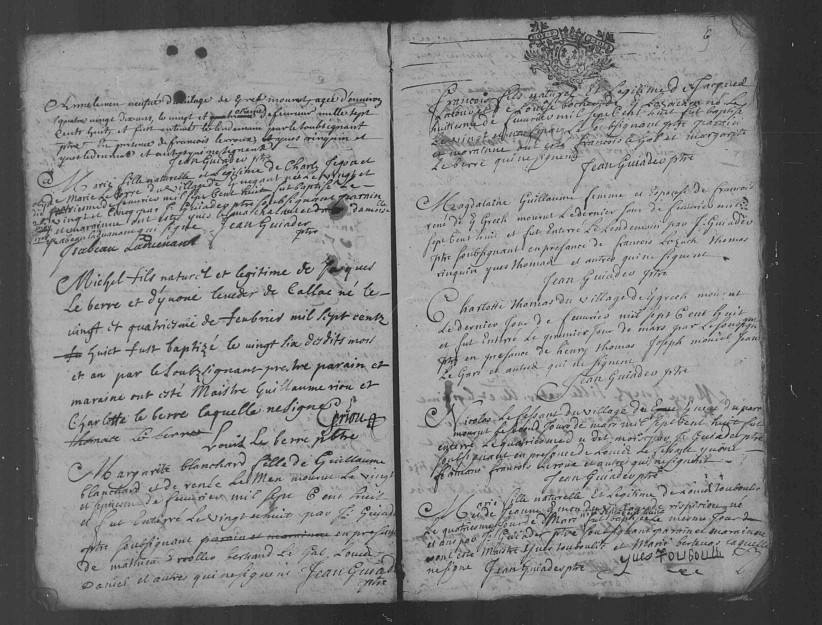 Contrat à Carnoët du 1/06/1676 de Nicolas Le Fessant époux de Jacquette Corgat et pour Gilles, Jan, Marguerite et Peronnelle Corgat tous bénéficiaires d'héritages de feu Jan Corgat + depuis le mois à 6 semaines ainsi que le douaire de Françoise Borcallac leur mère. Il s'agit de plusieurs maisons et terres à Carnoët.