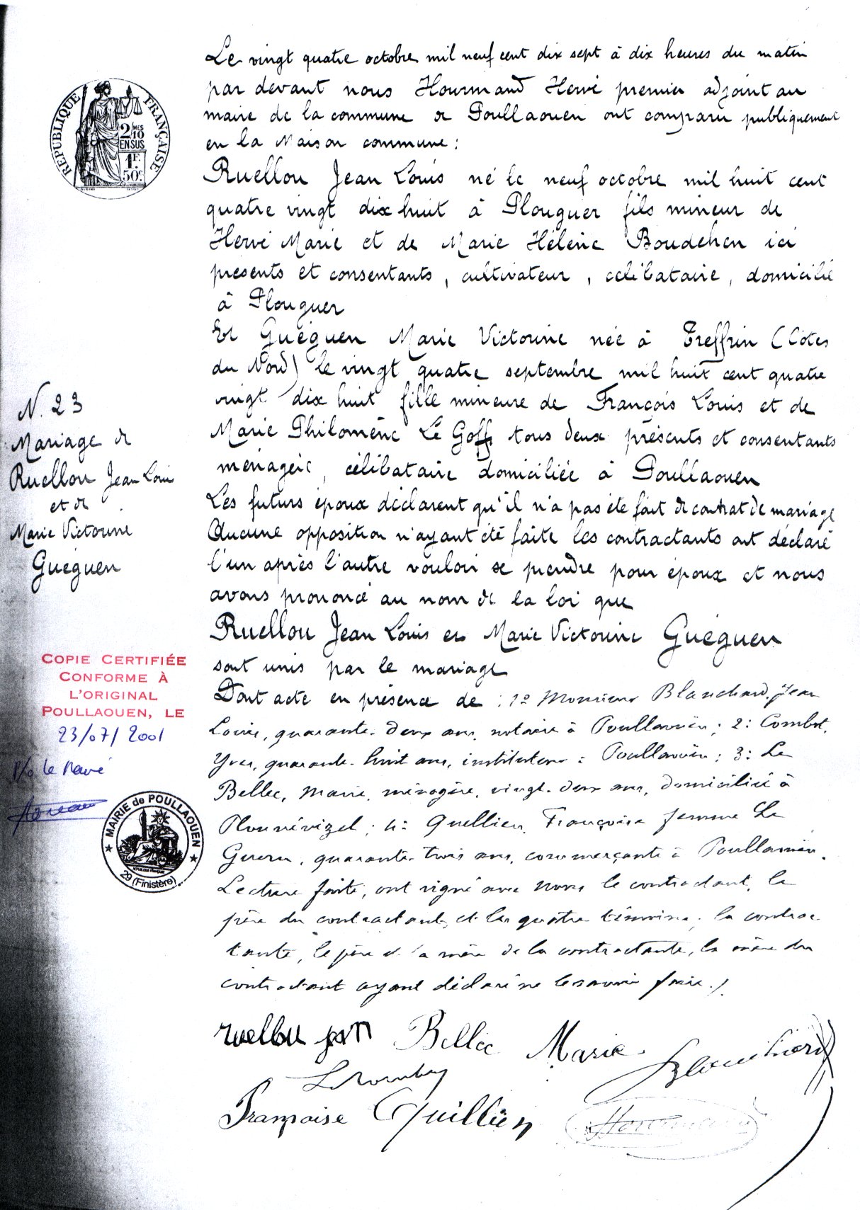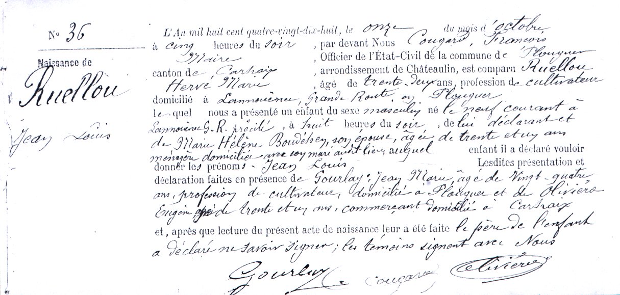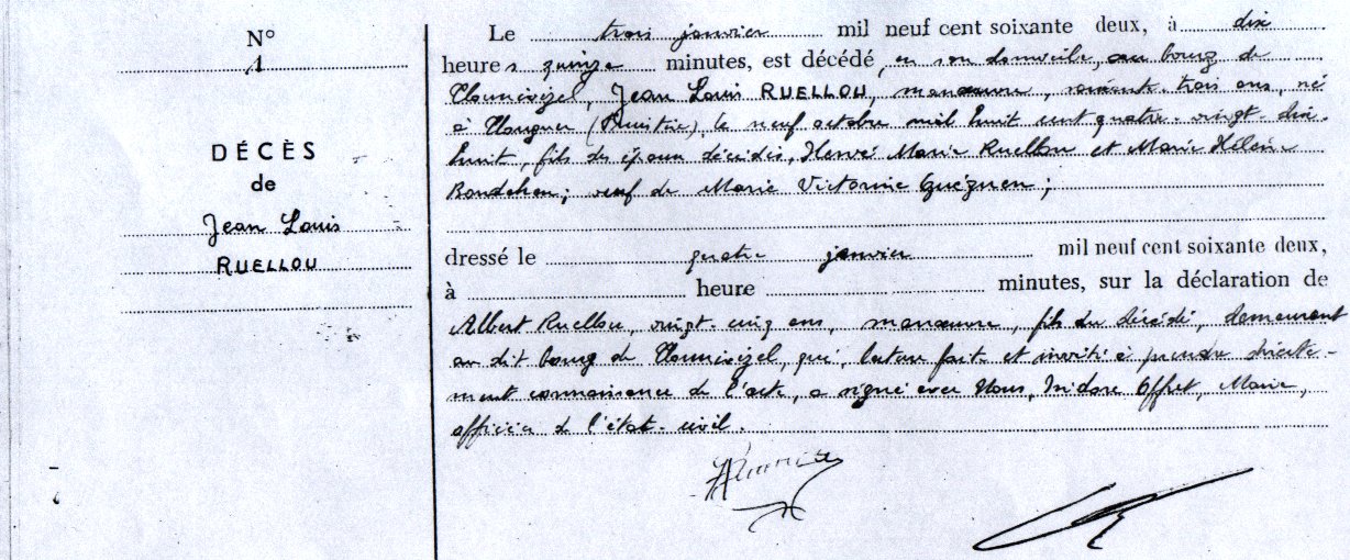 Enfant(s) : Marie Hélène RUELLOU