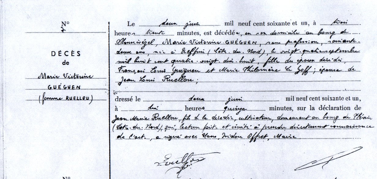 Enfant(s) : Marie Hélène RUELLOU
