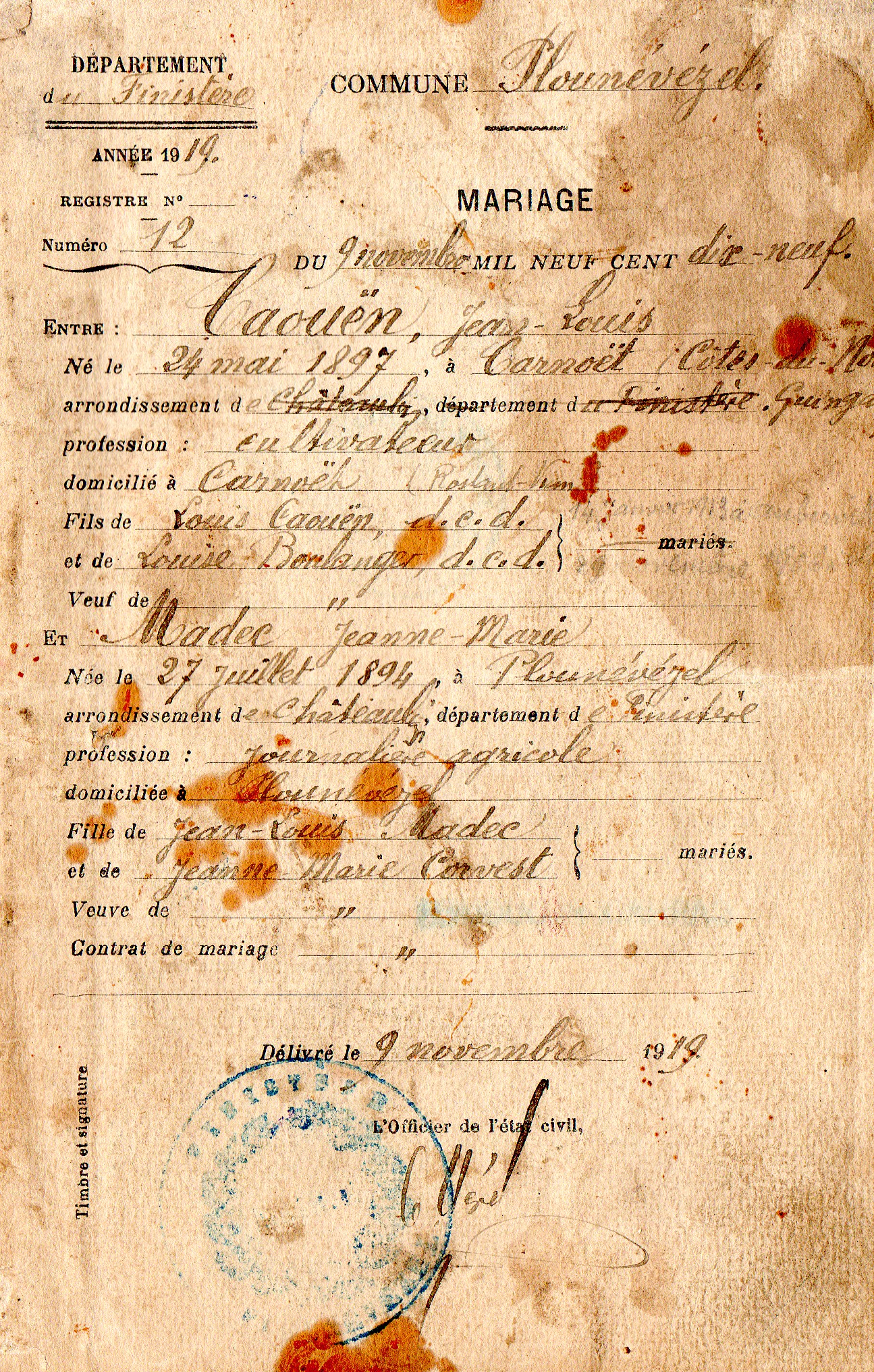 11/09/1919 à Plounévézel