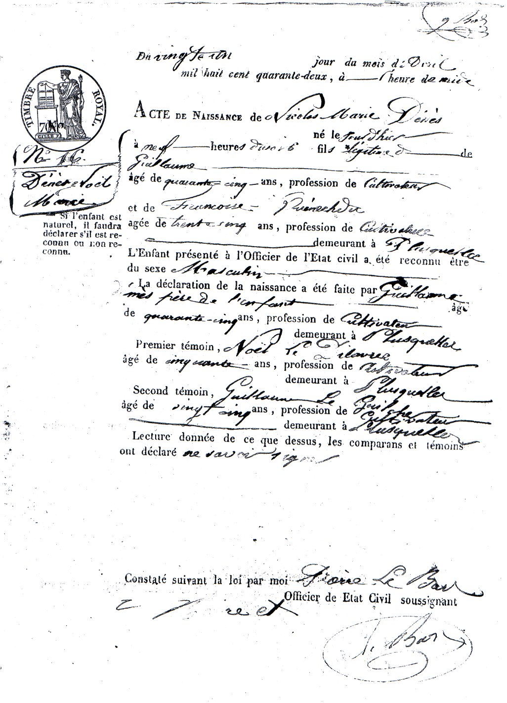 Enfant(s) : Angelique Marie Josephine DÉNÈS