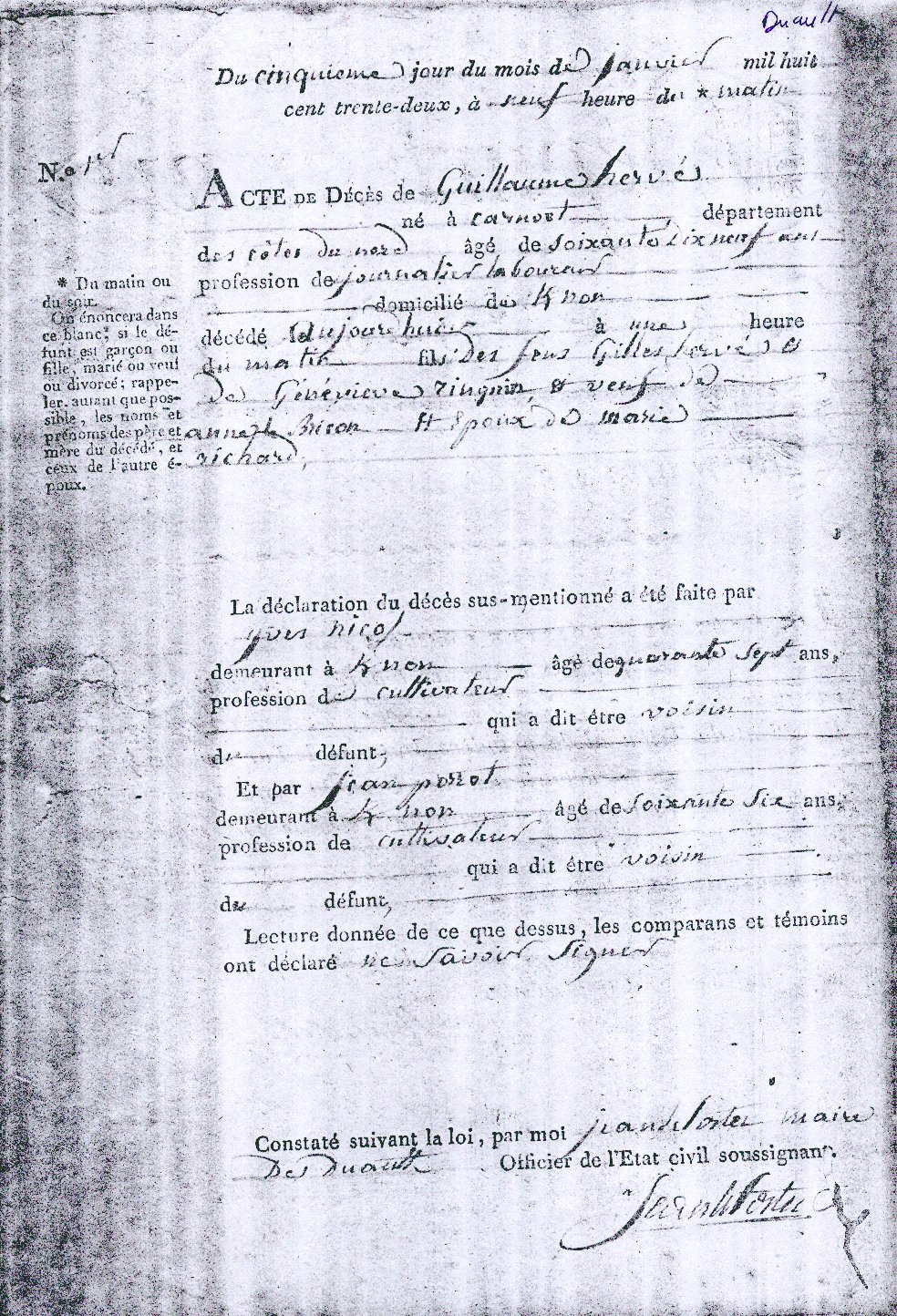 05/01/1832 à Duault,22160,Côtes-d'Armor,Bretagne,FRANCE,